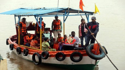 भिवंडी तालुक्यात अनेक ठिकाणी रस्त्यांवर खड्डे पडले आहेत. त्यामुळे खड्डे आणि कोंडी टाळण्यासाठी आम्ही गणेशमूर्ती प्रवासी बोटीने आणण्याचे ठरविले होते. त्यानुसार गावातील गणेशमूर्ती बोटीने आणल्या. – मनोज प्रकाश पाटील, माजी उपसरपंच, नांदकर.