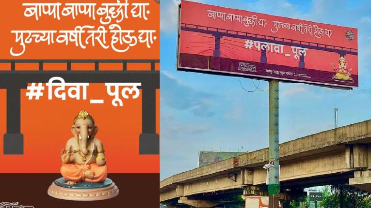 या पुलाला खेटून हाॅटेल, इतर दुकाने आहेत. या दुकानांना नवी मुंबईतील बड्या राजकीय मंडळींचा आशीर्वाद असल्याने या दुकानांना हात न लावता कसरत करुन पलावा चौकात पूल उभारणीची कामे ठेकेदाराला करावी लागत आहेत.पलावा चौक हा शिळफाटा रस्त्यावरील मोठा अडथळा आहे हे माहिती असुनही या पुलाचे काम गतीने करण्यात येत नसल्याने स्थानिक आ. पाटील यांनी या पुलाच्या आधार खांबावर (पीलर) पुल लवकर उभारणीची बुध्दी यंत्रणांना देण्याची प्रार्थना करणारा फलक लावला आहे.डोंबिवली एमआयडीसीत सात महिन्यापूर्वी तत्कालीन पर्यावरण मंत्री आदित्य ठाकरे यांच्या हस्ते ११० कोटी खर्चाच्या रस्ते काँक्रीटीकरणाच्या कामाचे भूमिपूजन करण्यात आले.