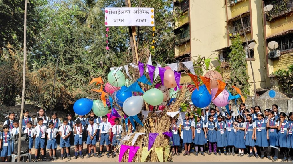 कल्याण – बहुतांशी विद्यार्थी अलीकडे मोबाईलमध्ये सर्वाधिक व्यस्त राहत आहेत. काही विद्यार्थ्यांना मोबाईलचे व्यसन लागले आहे. यामुळे अनेक विद्यार्थी शाळा, अभ्यासापासून दुरावत चालले आहेत. आवश्यक प्रसंगी संवादासाठी असलेली ही मोबाईल सुविधा चांगली असली तरी त्याचा अतिरेकी वापर आपल्या जीवन वाटचालीत बाधा आणू शकते. त्यामुळे सोमवारी कल्याणमधील सम्राट अशोक विद्यालयात विद्यार्थी, शिक्षकांनी मोबाईल अतिवापर टाळण्याच्या प्रवृत्तीचे शालेय आवारातील होळीत दहन केले.