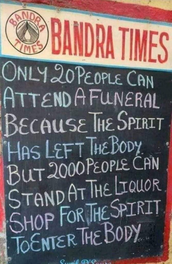 рдпрд╛ рд╕реВрдЪрдирд╛ рдлрд▓рдХрд╛рд╡рд░ рдПрдХ рдореЗрдЬрд╢реАрд░ рд╡рд╛рдХреНрдп рд▓рд┐рд╣рд┐рдгреНрдпрд╛рдд рдЖрд▓рдВ рдЕрд╕реВрди рдЕрдВрддреНрдпрд╕рдВрд╕реНрдХрд╛рд░рд╛рд╕рд╛рдареА рдХреЗрд╡рд│ реиреж рдЬрдгрд╛рдВрдирд╛ рддрд░ рджрд╛рд░реБрдЪреНрдпрд╛ рджреБрдХрд╛рдирд╛рд╕рдореЛрд░ рджреЛрди рд╣рдЬрд╛рд░ рдЬрдгрд╛рдВрдирд╛ рдХрд╛ рдкрд░рд╡рд╛рдирдЧреА рджреЗрдгреНрдпрд╛рдд рдЖрд▓реАрдп рдпрд╛рдЪрдВ рдХрд╛рд░рдг рдпрд╛рдордзреНрдпреЗ рд╕рд╛рдВрдЧрд┐рддрд▓рдВ рдЖрд╣реЗ. ‘рдЕрдВрддреНрдпрд╕рдВрд╕реНрдХрд╛рд░рд╛рд▓рд╛ рдХреЗрд╡рд│ реиреж рд▓реЛрдХрдВ рдЙрдкрд╕реНрдерд┐рдд рд░рд╛рд╣реВ рд╢рдХрддрд╛рдд рдХрд╛рд░рдг рддрд┐рдереЗ рд╕реНрдкрд┐рд░реАрдЯрдиреЗ рдореНрд╣рдгрдЬреЗрдЪ рдЖрддреНрдорд╛рдиреЗ рд╢рд░реАрд░рдЪрд╛ рддреНрдпрд╛рдЧ рдХреЗрд▓рд╛рдп. рдорд╛рддреНрд░ рджрд╛рд░реБрдЪреНрдпрд╛ рджреБрдХрд╛рдирд╛рд╕рдореЛрд░ реирежрежреж рд▓реЛрдХрдВ рд░рд╛рдВрдЧреЗрдд рдЙрднреЗ рд░рд╛рд╣реВ рд╢рдХрддрд╛рдд рдХрд╛рд░рдг рддреНрдпрд╛рдВрдЪреНрдпрд╛ рд╢рд░реАрд░рд╛рдордзреНрдпреЗ рд╕реНрдкрд┐рд░реАрдЯ рдЬрд╛рдгрд╛рд░ рдЕрд╕рддреЗ,’ рдЕрд╕рдВ рдпрд╛ рд╕реВрдЪрдирд╛ рдлрд▓рдХрд╛рд╡рд░ рд▓рд┐рд╣рд┐рд▓реЗрд▓рдВ рдЖрд╣реЗ.