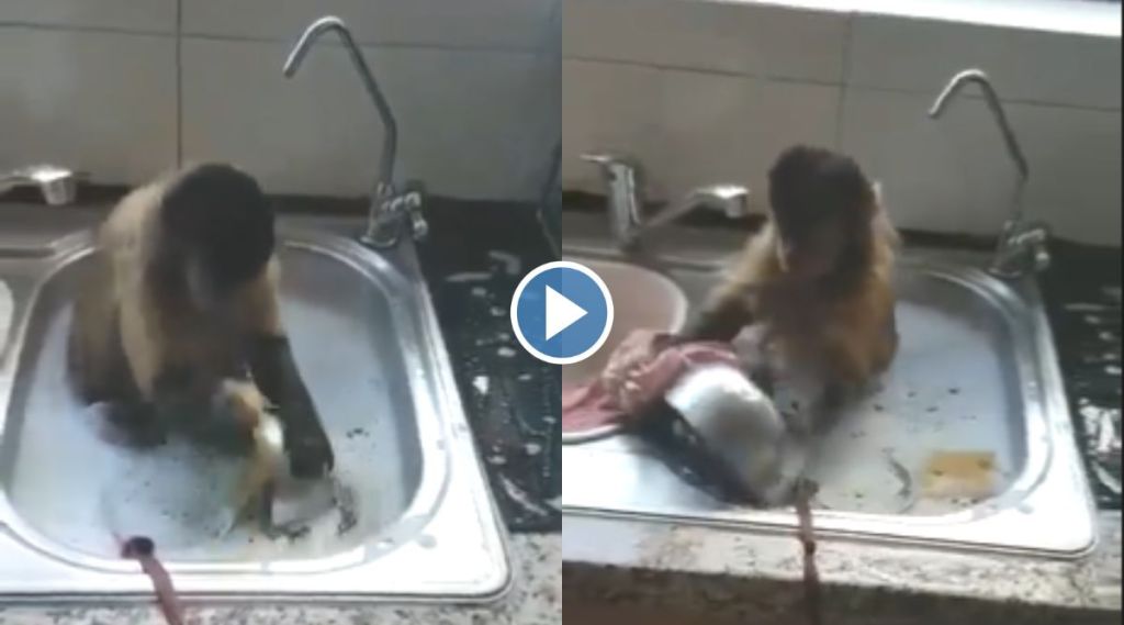 सोशल मीडियावर आपणाला आश्चर्यचकित करणारे अनेर व्हिडीओ व्हायरल होत असतात. सध्या असाच एका वानराचा व्हिडीओ व्हायरल होत आहे. ज्यामध्ये एक वानर घरातील महत्त्वाचे असे भांडी धुण्याचे काम करताना दिसत आहे. व्हायरल व्हिडिओमध्ये वानर किचनमध्ये ठेवलेली भांडी धुत आहे. भांडी धुण्याची त्याची पद्धत अनोखी असून त्याला भांडी धुताना पाहून अनेकांना आपलं हसू आवरणं कठीण झालं आहे.