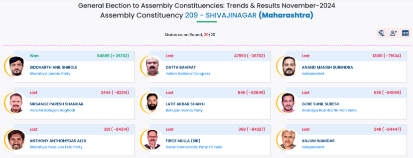 या निवडणुकांचे निकाल भारतीय निवडणूक आयोगाच्या संकेतस्थळावर उपलब्ध आहेत आणि आम्ही तिन्ही जागांचे निकाल तपासले आहे. शिवाजीनगर विधानसभा मतदारसंघात भाजपा आणि काँग्रेसमध्ये थेट लढत झाली होती, ज्यात भाजपाचे उमेदवार सिद्धार्थ अनिल शिरोळे विजयी झाले. त्यांनी त्यांचे निकटचे प्रतिस्पर्धी दत्ता बहिरट (काँग्रेस) यांचा ४७,९९३ मतांनी पराभव केला. या जागेवर एआयएमआयएमचा उमेदवार नव्हता.