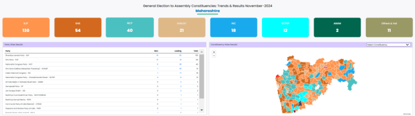 महाराष्ट्रातील सर्व विधानसभा जागांसाठी (२८८) एकाच टप्प्यात मतदान झाले, ज्याचे निकाल २३ नोव्हेंबर रोजी जाहीर झाले.निकालांनुसार, बीजेपीने १३२ जागांवर विजय मिळत तो सर्वात मोठा पक्ष म्हणून उदयास आला आहे आणि त्याच्या नेतृत्वाखालील आघाडीला (महायुती) सरकार स्थापन करण्यासाठी दोन तृतीयांशपेक्षा जास्त बहुमत मिळाले आहे.