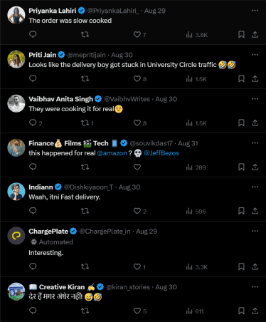 तर एक नेटकरी कमेंट करत म्हणाला, “यात काही पदार्थ बनवणार आहेस की म्युझियममध्ये ठेवण्याचा विचार आहे.” तर दुसऱ्याने कमेंट करत लिहिलं, “मला असं वाटतं की डिलिव्हरी बॉय युनिव्हर्सिटी सर्कलच्या ट्रॅफिकमध्ये अडकला असणार”, तर एकाने त्याच्याबरोबरदेखील असाच अनुभव घडल्याचे सांगितले. तो कमेंट करत म्हणाला, “माझ्याबरोबरही अशीच विचित्र गोष्ट घडली. मी जून २०२३ मध्ये एक ऑर्डर दिली होती, ती माझ्यापर्यंत पोहोचलीच नाही आणि याची तक्रार केल्यानंतर मला परतावा मिळाला, पण नंतर तीच ऑर्डर मला ऑक्टोबरमध्ये मिळाली.”