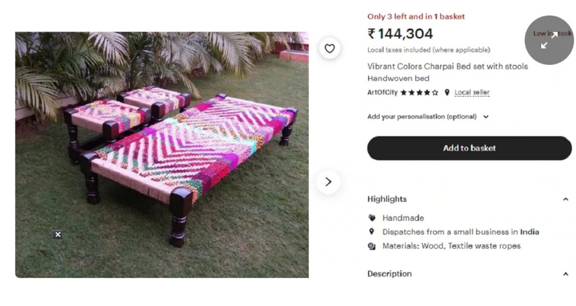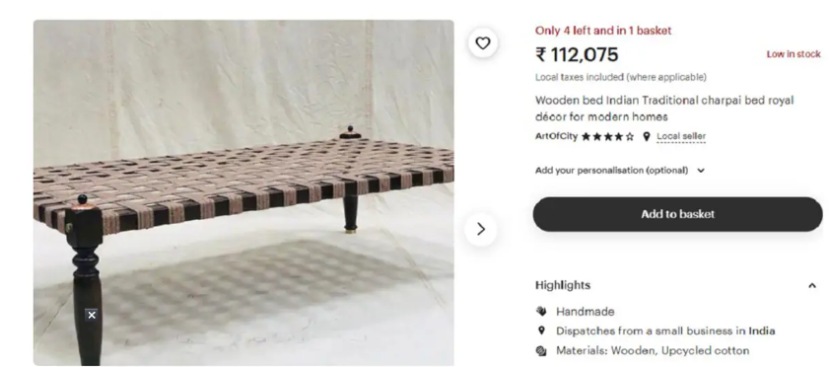 अमेरिकेत भारतीय बनावटीच्या एका खाटेची किंमत तुमच्या पाच महिन्यांच्या पगारापेक्षा जास्त आहे. जर तुमचा पगार महिन्याला वीस हजार रुपये असेल तर समजून जा की पूर्ण पाच महिन्यांचा पगार देऊनही तुम्हाला अमेरिकेत खाट विकत घेता येणार नाही. कारण ई-कॉमर्स वेबसाइटवर विकल्या जात असलेल्या खाटांची किंमत एक लाखांहून अधिक असल्याचं दिसत आहे. याबाबत सोशल मीडियावरही चर्चा रंगली आहे. लोक वेगवेगळ्या प्रतिक्रिया देत आहेत. भारतीत अतिशय शुल्लक वाटणाऱ्या वस्तूची किंमत बाहेरच्या देशात मात्र न परवडणारी आहे.