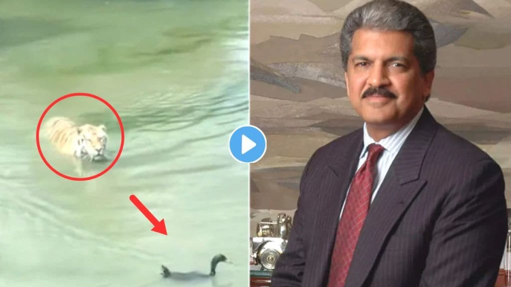 Anand Mahindra Shared Tiger vs Duck Video : जंगलात वाघ, सिंह, बिबट्यासारखे खतरनाक प्राणी शिकारीचा शोध घेत असतात. एखादा प्राणी त्यांच्या तावडीत सापडला की, त्याच्यावर हल्ला करून त्याला खाऊन टाकतात. या प्राण्यांचे शिकार करण्याचे डावपेच पाहून अंगावर काटा आल्याशिवाय राहत नाही. आताही एका भुकेल्या वाघाचा थरकाप उडवणारा व्हिडीओ उद्योगपती आनंद महिंद्रा यांनी ट्वीटर अकाऊंटवर शेअर केला आहे. या व्हिडीओत पाण्यात शिरलेला वाघ बदकाची शिकार करण्याचा प्रयत्न करताना दिसतो. पण त्या बदकाने युक्ती लढवली अन् वाघाला कायमचा धडा शिकवला. बदकाने असं नक्की काय केलं की वाघालाही पाण्यातच घाम फुटला, हे या व्हायरल व्हिडीओत पाहिल्यांतर तुम्हालाही आश्चर्याचा धक्का बसेल.