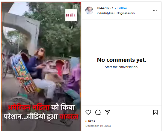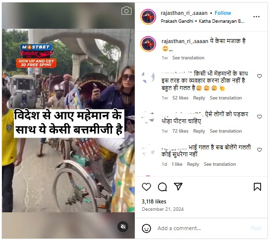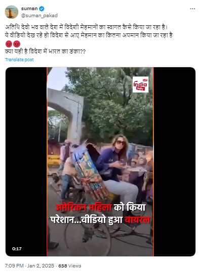माजी पंतप्रधान शेख हसीना यांचा वाढदिवस साजरा करण्यासाठी अभिनेत्री मिष्टी सुबास बांगलादेशच्या रस्त्यावर गेल्या असता, त्यांची काही तरुणांनी छेड काढली. या घटनेचा जुना व्हिडीओ भारतातील अलीकडचा असल्याचे सांगून शेअर केला जात आहे. त्यात एका अमेरिकन महिलेचा भारतात छळ होत असल्याचा खोटा दावा करीत, व्हिडीओ व्हायरल करण्यात येत आहे. हा व्हिडीओ बांगलादेशातील असल्याचे निष्पन्न झाले. त्यामुळे व्हायरल दावा दिशाभूल करणारा आहे.