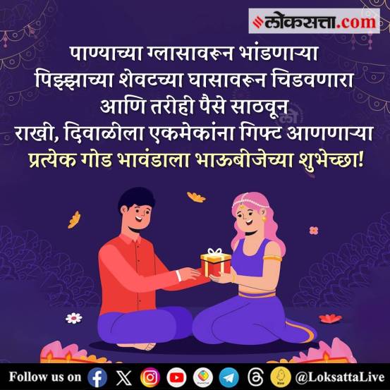 आणखीन एक सुंदर भेट द्यायची असेल तर उद्या तुम्ही व तुमच्या भावंडांचा फोटो थेट लोकसत्ता.कॉम वर झळकावू शकता. यासाठी आपल्याला लोकसत्ताच्या लोकउत्सव पेजला भेट द्यायची आहे. इथे तुम्हाला अगदी ३० सेकंदात तुमचा दिवाळीचा फोटो शेअर करता येईल. तुम्हाला सर्वांना लोकसत्ता कुटुंबाकडूनही भाऊबीजेच्या खूप खूप शुभेच्छा!