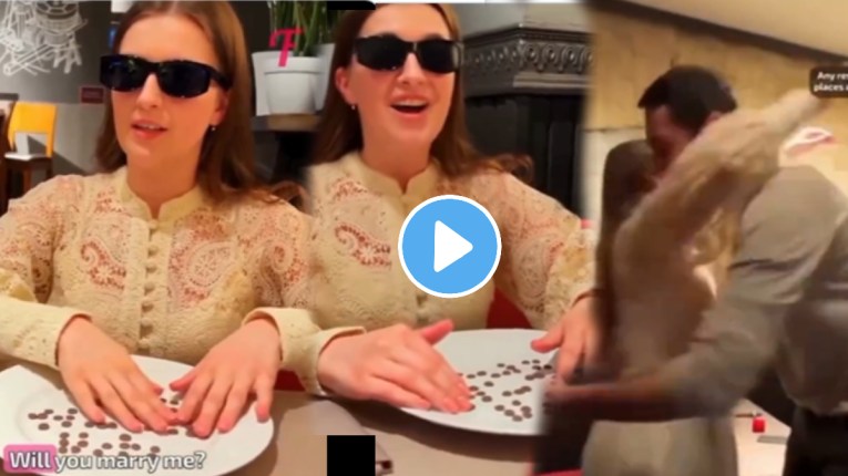 या व्हिडीओमध्ये तुम्ही पाहू शकता, गर्लफ्रेंडला दिसत नसल्यामुळे तरुणानं तिला अनोख प्रपोज केलं आहे. यावेळी बॉयफ्रेंड त्याच्या अंध गर्लफ्रेंडला डिनर डेटवर घेऊन गेला. तिथे त्यानं तिला ब्रेल लिपीचा वापर करत प्रपोज केला आहे. एका प्लेटमध्ये त्यानं ब्रेल लिपीची अक्षरं अशा पद्धतीने ठेवले की त्याच्या स्पर्शाने गर्लफ्रेंडला कळलं की त्यानं आपल्याला प्रपोज केलं आहे. त्यानं तिच्या प्लेटमध्ये लिहलं होतं की, माझ्याशी लग्न करशील का. अंध व्यक्तींना दिसत नसल्यामुळे ते सगळ्या गोष्टी स्पर्शाने आणि वासाने ओळखतात. यामुळे या तरुणानं आपल्या गर्लफ्रेंडला अशा पद्धतीत प्रपोज केलं. या व्हिडीओमध्ये तुम्ही पाहू शकता, गर्लफ्रेंड खूप खूश झाली आहे. त्यानंतर तरुणानं तिच्यासाठी अंगठीसुद्धा आणलेली होती, ती अंगठीही त्यानं तिच्या हातात घातली.