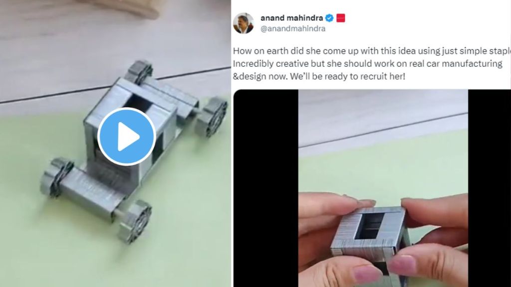 आनंद महिंद्रा यांनी @anandmahindra या त्यांच्या ट्विटर अकाउंटवरून हा व्हिडीओ शेअर केला आहे. या व्हिडीओच्या कॅप्शनमध्ये लिहिले, ‘फक्त स्टॅपलर पिन्सचा वापर करून तिला ही आयडिया कशी सुचली असेल? तिचे हे टॅलेंट अविश्वसनीय आहे; पण तिने आता खऱ्या कार मॅन्युफॅक्चरिंग आणि डिझाइनमध्ये काम करायला हवे. आम्ही तिला हायर करायला तयार आहोत.’