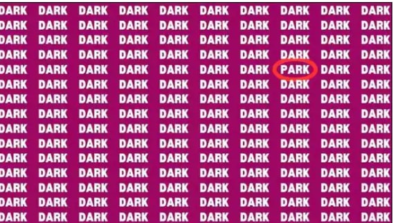 खरे तर रंगांच्या कॉन्ट्रास्टमुळे डोळे आणि मन गोंधळून जाते. तुम्ही आव्हान पूर्ण करू शकला आहाता का? नसेल तर आम्ही तुम्हाला शोधण्यास मदत करतो. जर तुम्हाला उत्तर सापडत नसेल, तर एक वेगळा शब्द म्हणजे PARK असा आहे. तुम्हाला हा वेगळा शब्द सापडला असेल तर अभिनंदन. मात्र, तुम्ही अजूनही तो शोधत असाल तर त्याचं उत्तर खाली दिलं आहे.