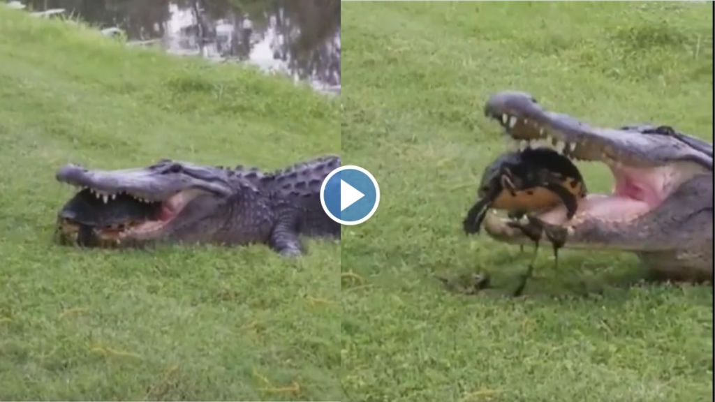 त्यामुळे कासवासारखा प्राणी मगर एका क्षणात गिळून टाकेल यात संशय नाही. मात्र, हा व्हिडीओ पाहिल्यानंतर तुम्हालाही आश्चर्याचा धक्का बसेल कारण मगरीच्या तावडीतून हे कासव सुखरुप परत कसं येऊ शकते? असा प्रश्न नेटकऱ्यांना पडला आहे. व्हायरल होत असलेल्या व्हिडीओत मगरीने तिच्या जबड्यात एका कासवाला पकडल्याचं दिसत आहे. ती कासवाला दाबण्याचा प्रयत्नही करताना दिसत आहे. मात्र, कावसाची पाठ टणक असल्याने मगरीला कासव गिळता येत नाही. त्यानंतर मगर आपल्या तीक्ष्ण दातांनी कासवाला खाण्याचा प्रयत्न करते. मात्र खूप प्रयत्न करुनही तिला कासव गिळता येत नाही. अशातच मगरीच्या जबड्यातून कासव सटकत आणि हळू हळू ते निघून गेल्याचं दिसत आहे.
