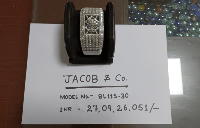 एएनआयने दिलेल्या फोटोंमध्ये दोन घड्याळं दिसत आहेत. यापैकी एका घड्याळ हे ‘जॅकोब अॅण्ड कंपनी’चं आहे. बीएल ११५.३० असं या घड्याळाच्या मॉडेलचं नाव आहे. या घड्याळाची किंमत २७ कोटी ९ लाख २६ हजार ५१ रुपये इतकी आहे.
