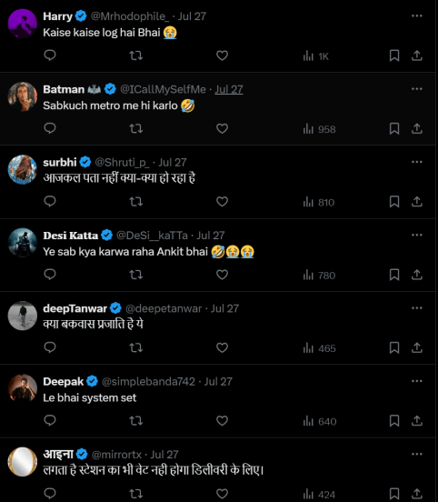 हा व्हिडीओ ‘Ankit’ या एक्स (Delhi Metro Pregnancy Test) अकाउंटवरून शेअर करण्यात आला आहे. “डिलिव्हरी पुढच्या स्टेशनला करा आता” असं कॅप्शन या व्हिडीओला दिलंय. व्हिडीओ सोशल मीडियावर व्हायरल होताच नेटकऱ्यांनी यावर संताप व्यक्त करत प्रतिक्रिया दिल्या आहेत; तर काही जणांनी त्यांना ट्रोलदेखील केलं आहे. एका युजरने कमेंट करत लिहिलं, “लाज नाही का वाटत यांना.” तर दुसऱ्याने लिहिलं की, “दिल्लीच्या मेट्रोमध्ये काहीही होऊ शकतं.”
