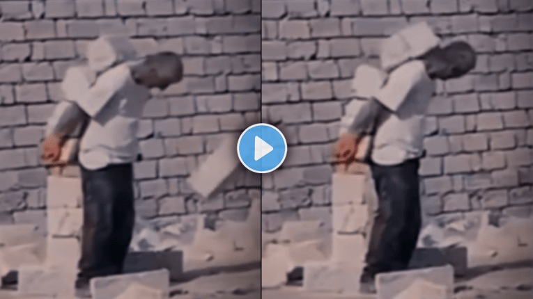 सोशल मीडियावर व्हायरल झलेल्या या व्हिडीओमध्ये एक माणूस मोठमोठ्या चार ते पाच विटांचं ओझं आपल्या पाठीवर उचलून घेऊन जाताना दिसत आहे. विटा पाठीवरून नेत असताना अचानक एक वीट त्याच्या डोक्याला आपटून खाली पडते. एवढं होऊनही तो पाठीवरील भार तसाच घेऊन आपलं काम सुरूच ठेवतो.