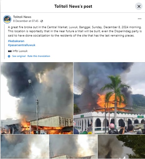 शीर्षकात नमूद केले होते की (अनुवाद) : रविवार, ८ डिसेंबर २०२४ रोजी सकाळी सेंट्रल मार्केट, लुवुक, बांगगाई येथे भीषण आग लागली. या ठिकाणी भविष्यात एक मॉल बांधला जाईल, असे सांगण्यात येत आहे. यावेळी तिथल्या डिस्पेरिंडाग पक्षानेही याबाबत स्पष्टीकरण दिले आहे.