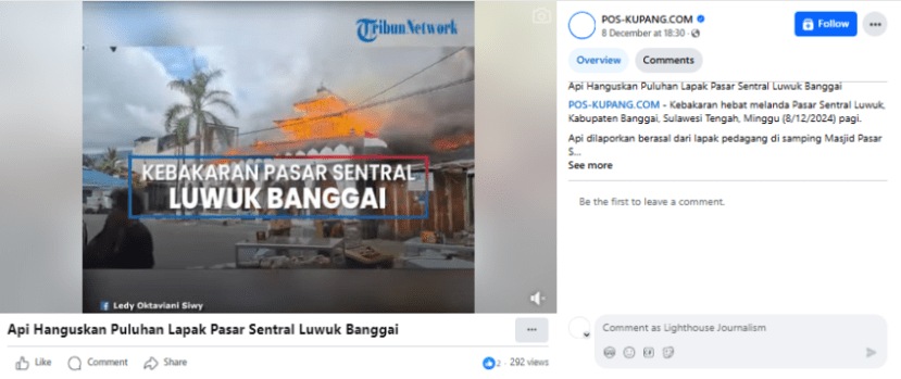 यावेळी आम्हाला ८ डिसेंबर रोजी Tolitoli News ने पोस्ट पब्लिश केलेल्या न्यूजची एक फेसबुक पोस्ट मिळाली.