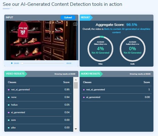 या डिटेक्टरला व्हिडिओ एआय-जनरेटेड असल्याचे आढळून आला.