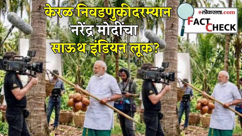 एक्स (ट्विटर) युजर @LambaAlka अलका लांबा यांच्या अकाउंटवरून हा फोटो शेअर करण्यात आला आहे. त्यामध्ये नरेंद्र मोदी नारळ हातात धरून फोटोशूट करताना दिसत आहेत. तसेच या फोटोला पाहून ‘केरळमध्ये रील बनवताना पंतप्रधान नरेंद्र मोदी’ अशी कॅप्शन देण्यात आली आहे.