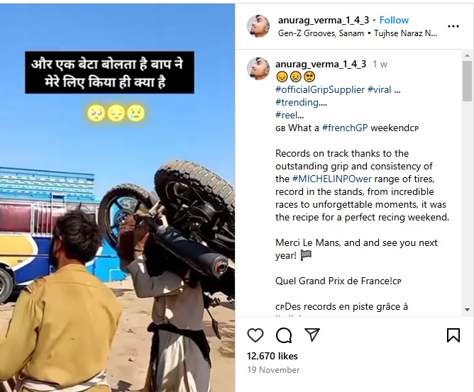 सोशल मीडियावरील हा व्हिडीओ @anurag_verma_1_4_3 या इन्स्टाग्राम अकाउंटवरून शेअर करण्यात आला असून, “और एक बेटा बोलता है की बापने मेरे लिए किया ही क्या है” (…आणि मुलगा म्हणतो बापाने माझ्यासाठी काय केलं?) अशी कॅप्शन या व्हिडीओला देण्यात आली आहे. यादरम्यान, हा व्हिडीओ नेमका कुठला आहे, हे अद्याप कळू शकलेले नाही.
