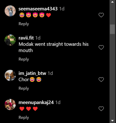 हा क्यूट व्हिडीओ पाहून अनेकांनी त्यावर आपल्या प्रतिक्रिया दिल्या आहेत. एका युजरने कमेंट करीत लिहिलं, “आता हा मोदक सरळ त्याच्या पोटात जाणार, असं दिसतंय.” तर दुसऱ्याने, “सो स्वीट”, अशी कमेंट केली. एक जण कमेंट करीत म्हणाला, “आधी त्यानं बाप्पाचे चरण स्पर्श करून परवानगी घेतली आणि मगच मोदक घेतला.”