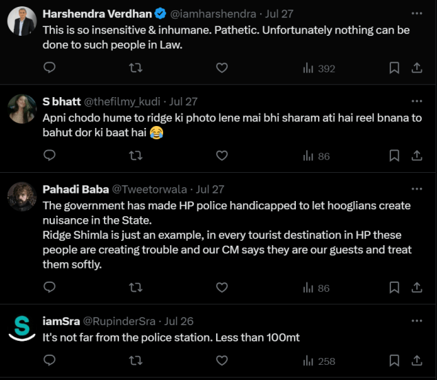 व्हिडीओ व्हायरल होताच नेटकऱ्यांनी तिच्या या असंवेदनीय वागण्यावर संताप व्यक्त केला आणि तिला ट्रोलदेखील केले. “हे खूप असंवेदनशील आणि दयनीय आहे. दुर्दैवानं अशा लोकांसाठी कायदादेखील काहीही करू शकत नाही”, अशी कमेंटही एका व्यक्तीनं केली. तर, एकानं हिमाचल पोलीस, डी.सी. शिमला यांना टॅग करून लिहिले, “आपणास विनंती आहे की आमच्या सार्वजनिक ठिकाणांचे रक्षण करावे.”