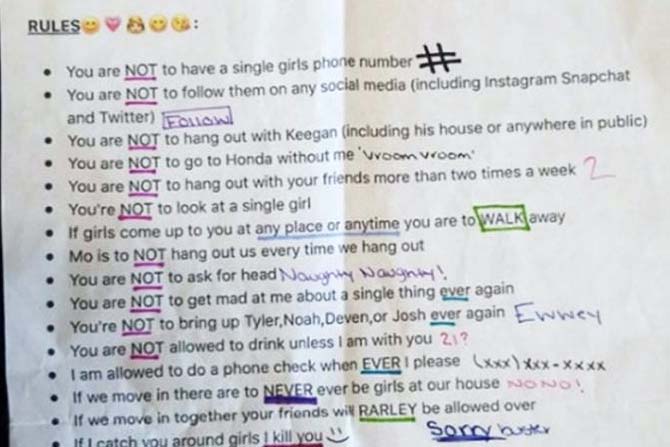 त्याच्याकडे लग्न न झालेल्या एकाही मुलीचा फोन नंबर नको, त्या मुलींना त्याने सोशल मीडियावरही फॉलो करु नये, त्याने बाईकवरुन आपल्याशिवाय जाऊ नये, आठवड्यातून २ वेळाच आपल्या मित्रांना भेटावे, एकाही मुलीकडे पाहू नये, मी फोन तपासायला मागितल्यावर मला लगेच द्यावा असे नियम या मुलीने घातले आहेत. हे एकूण २२ नियम असून त्याने ते पाळावेत असेही तिने यामध्ये म्हटले आहे. सोशल मीडियावर या रुल बुकची जोरदार चर्चा सुरु आहे. गर्लफ्रेंडचा मेसेज आल्यावर त्याने १० मिनिटांत्या आत प्रत्येक मेसेजला उत्तर द्यावे असेही यामध्ये नमूद करण्यात आले आहे. त्यामुळे आता प्रत्यक्षात ही नियमावली करण्यात आलेला बॉयफ्रेंड हे नियम स्वीकारुन या गर्लफ्रेंडसोबत राहणार का असा प्रश्न आहे. हे दोघे कुठले आहेत आणि त्यांची नावे काय याबाबत मात्र ठोस माहिती मिळू शकली नाही.