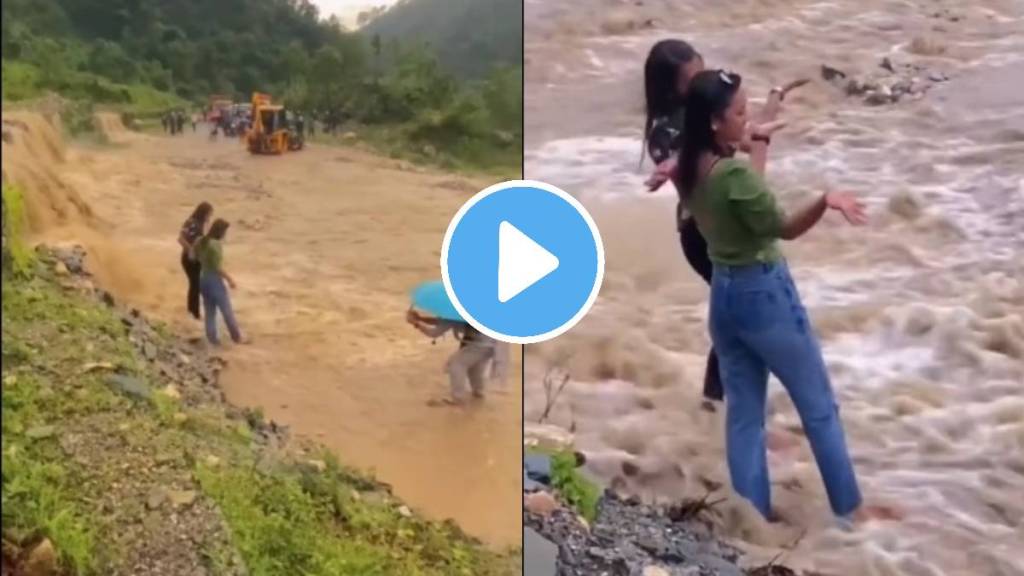 व्हायरल होणाऱ्या व्हिडीओमध्ये तुम्ही पाहू शकता की, डोंगराळ भागातील एका रस्त्यावर पूरसदृश्य स्थिती निर्माण झाली आहे. डोंगरावरील पावसाचे पाणी थेट रस्त्यावर आल्याने नागरिकांना रस्त्यावरून एका ठिकाणाहून दुसऱ्या ठिकाणी जाणे अवघड झाले आहे. अशा परिस्थितीत रस्त्याच्या एका बाजूला अनेक वाहन चालक पुराचे पाणी ओसरण्याची वाट पाहत आहेत. तर एक जेसीबी मशिन रस्त्यावरील दगड हटवताना दिसत आहे. पण रस्त्याच्या दुसऱ्या बाजूला काही तरुणी कसाही विचार न करता जीव धोक्यात घालून रिल बनवण्यासाठी पुराच्या पाण्यात उतरल्या आहेत. यातील दोन तरुणी पाण्याच्या मधोमध जाऊन नाचू लागतात आणि एक तरुणी समोर उभी राहून त्यांचा व्हिडिओ शूट करते. यावेळी अचानक जर पुराचे पाणी वाढले असते तर ते तरुणींच्या जीवावर बेतू शकले असते, पण त्याचा विचार करता ह्या तरुणी सोशल मीडियावर प्रसिद्धीसाठी चक्क पुराच्या पाण्यात उभ्या आहेत.
