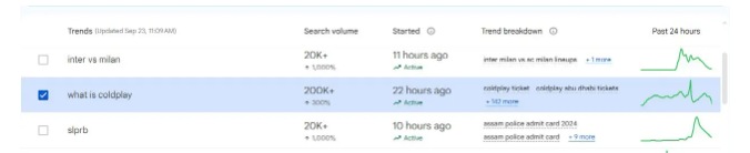 गुगल ट्रेंड्समध्ये कोल्डप्ले