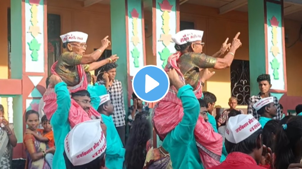 या व्हिडीओमध्ये तुम्ही पाहू शकता, एक आजी देवीच्या मिरवणुकीमध्ये चक्क खांद्यावर बसून नाचत आहे. आजीनं नऊवारी साडी नेसून डोक्यावर टोपी घालून खांद्यावर बसून डान्स करत आहे. यावेळी आजीचा उत्साह पाहण्यासारखा आहे. या आजीच्या डान्सपुढे बाकीच्यांचा डान्स देखील फिका पडला आहे. आजीने नववारी साडी नेसून अशा काही डान्सच्या स्टेप केल्या आहेत जे पाहून सर्वांना आश्चर्यचा धक्का बसला आहे. एका बाजूला मोठ्या आवाजात डीजे सुरु आहे तर डीजेच्या समोर अनेक महिलावर्ग डिजेच्या तालावर डान्स करत आहेत. या महिलाही आजीला पाहतच राहिल्या आहेत. तर आजीचा हा जबरदस्त डान्स पाहून अनेकांनी भुवया उंचावल्या आहेत.