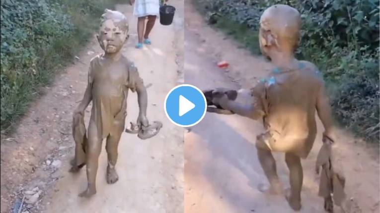 नवनीत सिकेरा यांनी सोशल मीडियावर एका मुलाचा व्हिडीओ शेअर केला आहे; जो खूपच मजेशीर आहे. या व्हिडीओमध्ये एक लहान मूल पूर्णपणे चिखलात लोळून आल्याचं दिसतंय. त्याचे कपडे चिखलामुळे पूर्णपणे खराब झाले असून, अंगावर फक्त ओला चिखलच चिखल दिसत आहे. यादरम्यान, त्यानं एका हातात आपली पॅंट पकडली आहे; तर दुसऱ्या हातात चप्पल धरली आहे. त्यामुळे मुलाची काय अवस्था झाली आहे ते तुम्ही व्हिडोओमध्ये पाहू शकता. खेळता खेळता किंवा मासे पकडताना तो चिखलात पडला असावा, असं वाटतं; पण त्यानंतर घरी गेल्यानंतर त्याची काय अवस्था झाली असेल हे तुम्हालाही चांगलंच ठाऊक असेल.