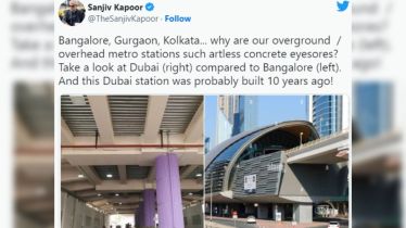 शनिवारी, कपूर यांनी भारतामधील काही शहरांतील मेट्रो बांधकामाबद्दलचे मत ट्विटरच्या माध्यमातून व्यक्त केले आहे. त्यांनी आपल्या ट्विटमध्ये लिहिलं, “बंगळुरू, गुडगाव, कोलकाता… आमची ओव्हरग्राउंड/ओव्हरहेड काँक्रीटची मेट्रो स्टेशन्स कलाहीन आहेत? डावीकडील बंगळुरूच्या तुलनेत उजवीकडील दुबईचे स्टेशन पाहा, दुबईचे हे स्टेशन १० वर्षांपूर्वी बांधलेले असावे. ! (sic)”