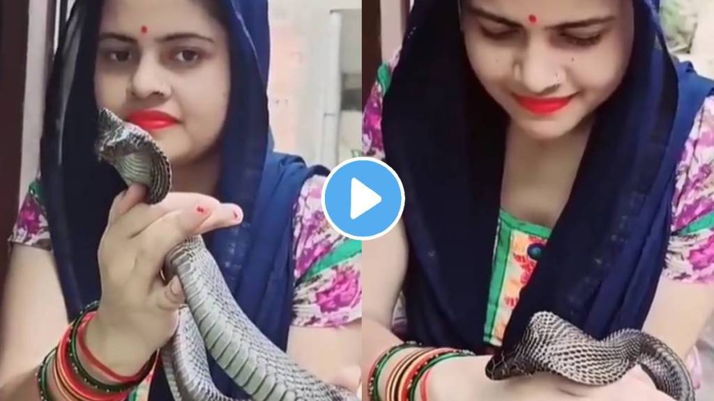 King Cobra Viral video: सापाचं नुसतं नाव जरी काढलं तरी आपली भांबेरी उडते. जर साप खरचं तुमच्या समोर आला तर तुम्ही काय करणार ? तुम्ही नक्कीच घाबरुन जाल. एकीकडे लोक नुसतं सापाचं नाव जरी काढलं तर घाबरतात आणि दुसरीकडे काही लोक मात्र सापाला अजिबात घाबरत नाहीत. सध्या असाच एक व्हिडिओ सोशल मीडियावर प्रचंड व्हायरल होत आहे. एक महिला भला मोठा किंग कोब्रा साप पकडताना दिसत आहे. या महिलेने किंग कोब्रा सापाला आपल्या हातात घेतल्याचे पाहून नेटकरी देखील हैराण झाले आहेत.
