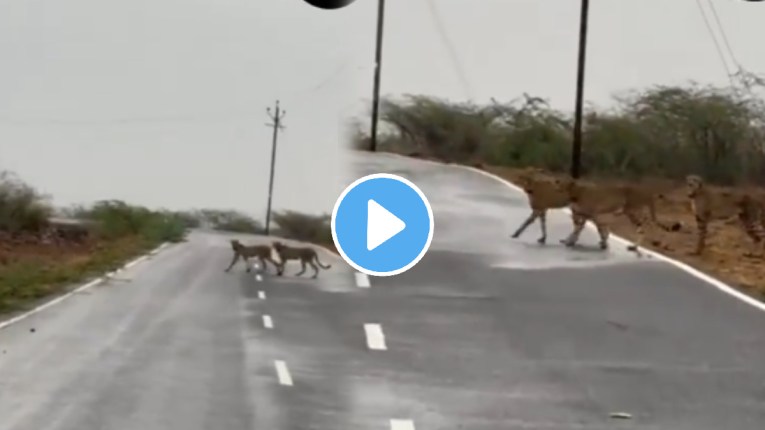 Viral video: चित्ता हा सर्वात वेगवान प्राणी आहे. तो ताशी ८० ते १२० प्रती कि.मी. वेगाने पळू शकतो. त्यामुळे समोरील प्राणी कितीही वेगवान असला तरी तो चित्त्याचा सामना करू शकत नाही. अशाच चित्त्यांचा एक कळप मध्य प्रदेशातील कुनो राष्ट्रीय उद्यानापासून सुमारे १५० किलोमीटर अंतरावर असलेल्या जौरा परिसरातील पगारा धरणाजवळ भटकताना दिसला. एक नाही दोन नाही तर तब्बल पाच चित्ते भटकताना दिसले. उघड्यावर त्यांच्या उपस्थितीमुळे गावकरी आणि ये-जा करणाऱ्यांमध्ये घबराट पसरली. सकाळी फिरायला गेलेल्या स्थानिकांना रस्त्याच्या मधोमध चित्ते पाहून धक्का बसला. काही लोक पळून गेले आणि लपले, तर काहींनी व्हिडिओ रोकॉर्ड करण्यात यश मिळवले.