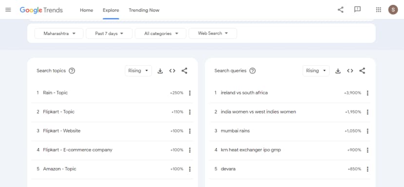 Top Google Trends Maharashtra: आजचा जमाना हा सोशल मीडियाचा आहे. त्यावर रोज वेगवेगळे विषय हे ट्रेंडिंगवर असतात. एखादा विषय सहज येतो आणि अख्ख्या सोशल मीडियावर ट्रेंड होऊ लागतो. तर, कधी एखाद्या घटनेमुळे त्याच्या आणखी चार बाजू सोशल मीडियामुळे समोर येतात. याच गूगल ट्रेंडवर गेल्या सात दिवसांमध्ये महाराष्ट्रातील नेमके कोणते विषय ट्रेंड झाले, लोकांनी कोणते विषय सर्वाधिक सर्च केले, कोणत्या विषयासंदर्भात युजर्सनी जाणून घेण्याचा प्रयत्न केला हे आपण पाहू.