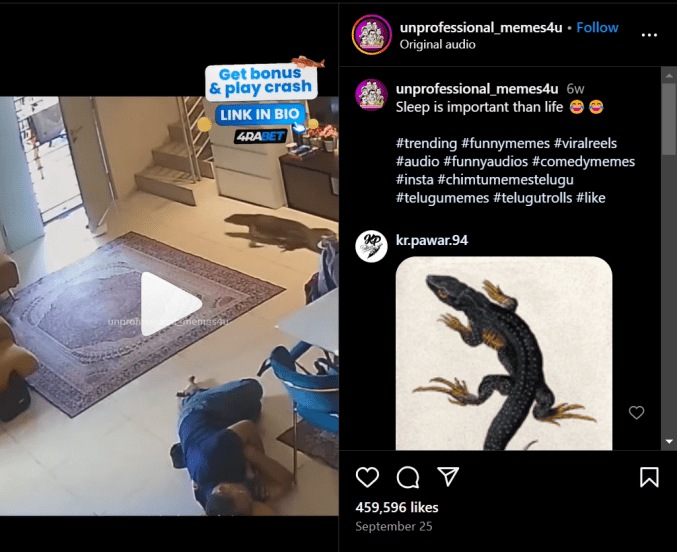 हा व्हायरल व्हिडीओ @unprofessional_memes4u या इन्स्टाग्राम अकाउंटवरून शेअर करण्यात आला असून “आयुष्यापेक्षा झोप महत्त्वाची आहे”, असं कॅप्शन या व्हिडीओला देण्यात आलं आहे; तर या व्हिडीओला तब्बल ११.५ मिलियन व्ह्यूज आले आहेत. यादरम्यान ही घटना नेमकी कुठे घडली हे अद्याप कळू शकले नाही.