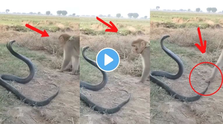 Monkey vs Cobra Fight Video: सापासोबत मस्ती करणं म्हणजे जीवाशी खेळ करण्यासारखंच आहे. भारतातील विषारी सापांपैकी अत्यंत घातक समजल्या जाणाऱ्या नागापासून तर सर्वच चार हात लांब राहतात. माणसंही या सापासोबत माकडचाळे करत नाहीत. पण खुद्द माकडानेच एका भल्या मोठ्या नागासमोर ‘माकड’चाळे केले. एका माळरानात नागासमोर माकड येऊन त्याची शेपटी धरून त्याला ओढू लागतो. पण नागानेही नेहमीप्रमाणे फणा काढून माकडाला चांगलीच अद्दल घडवली. नाग आणि माकडात झालेला खेळ कॅमेरात कैद झाला असून हा व्हिडीओ सोशल मीडियावर व्हायरल झाला आहे.