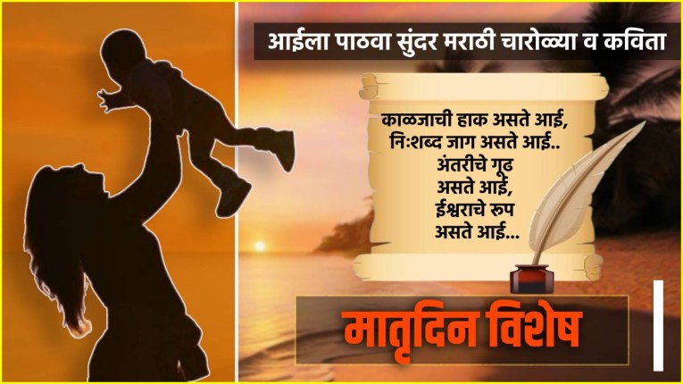 Marathi Charolya & Poems For Mothers : आई ही प्रत्येकाच्या आयुष्यातील एक खास व्यक्ती. तिचे प्रत्येकाच्या आयुष्यातील महत्त्व व स्थान हे अनन्यसाधारण आहे. आई आपल्या लेकराच्या सुखासाठी वाट्टेल ते करते. आईचे प्रेम हे कधीही मोजता येत नाही. या आईविषयी प्रेम व कृतज्ञता व्यक्त करण्यासाठी दरवर्षी मदर्स डे जगभरात साजरा केला जातो. या दिवशी मुले आपल्या आईला भेटवस्तू देत व वेगवेगळ्या पद्धतीने प्रेम व्यक्त करत मदर्स डे साजरा करतात. तुम्ही आईला सुंदर चारोळ्या किंवा कविता पाठवून हटक्या पद्धतीने मदर्स डेच्या शुभेच्छा देऊ शकता किंवा तुम्ही आईसाठी ग्रीटिंग्स तयार करत असाल तर या चारोळ्या किंवा कविता त्यावर लिहू शकता.