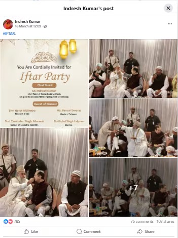इंद्रेश कुमार यांनी फेसबुकवर निमंत्रण पत्रासह कार्यक्रमाचे फोटोदेखील पोस्ट केले होते.