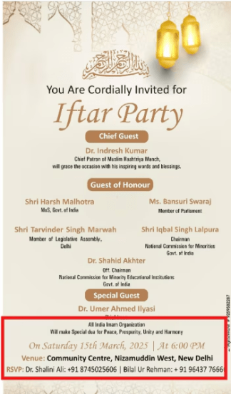 निमंत्रण पत्रात उल्लेख आहे की, हा कार्यक्रम शनिवार, १५ मार्च २०२५ रोजी नवी दिल्लीतील निजामुद्दीन पश्चिम येथील कम्युनिटी सेंटरमध्ये झाला. सोमवार, १७ मार्च २०२५ रोजी महाराष्ट्रातील नागपूर येथे हिंसाचार उफाळून आला.