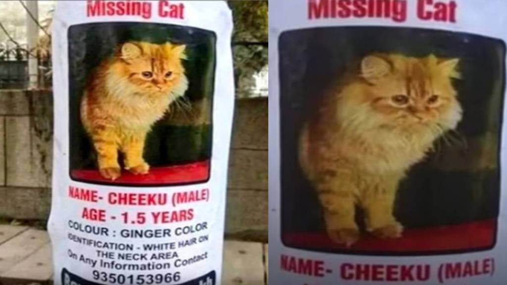 आपल्या घरातील एखादा सदस्य हरवला किंवा घर सोडून गेला तर त्यासाठी घरातील व्यक्ती कासावीस होऊन त्याचा शोध घेतात. नाही मिळाला तर पोलिस स्टेशनमध्ये तक्रार देऊन वर्तमानपत्रात जाहिरात देतात. त्यातही समाधान झाले नाही तर त्या व्यक्तीला शोधून देणाऱ्या व्यक्तीसाठी बक्षिस जाहीर करतात. ही बाब सामान्य आणि अपेक्षित अशीच आहे. मात्र हे सगळं एखादा पाळीव प्राण्यासाठी होत असेल तर? तर अशी घटना दुर्मिळच म्हणावी लागेल. मात्र अशीच एक घटना दिल्लीजवळच्या नोएडामध्ये घडली आहे. एवढंच नाहीतर या मांजरीला शोधून देणाऱ्याला १ लाख रुपयांचे बक्षीसही देण्यात येणार आहे.