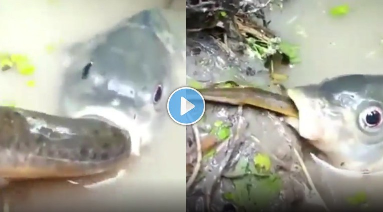 सोशल मीडियाच्या जगात तुम्हाला सापांशी संबंधित असंख्य आश्चर्यकारक व्हिडीओ पाहायला मिळतील. पण तुम्ही कधी सापाची शिकार होताना पाहिले आहे का? तेही एका माशाकडून. आता तुम्हाला प्रश्न पडला असेल की मासाही सापाची शिकार करू शकतो का? पण हे खरे आहे. असाच एक व्हिडीओ सध्या सोशल मीडियावर चांगलाच व्हायरल होत आहे. ज्यामध्ये एक मासा सापासारख्या प्राण्याला अतिशय आश्चर्यकारक पद्धतीने गिळताना दिसत आहे.