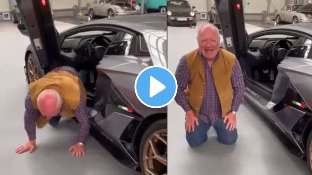 ‘द फिगेन’ नावाच्या ट्विटर खात्यावरून हा व्हिडीओ शेअर करण्यात आला आहे. ४१ सेकंदाच्या या व्हिडीओत एक वृद्ध व्यक्ती नव्याकोऱ्या लॅम्बोर्गिनी कारमधून बाहेर पडताना दिसत आहे. पण संबंधित व्यक्तीला वयामुळे कारमधून उतरता येत नाहीये. ती व्यक्ती कशीबशी कारमधून उतरताना दिसत आहे. कारमधून खाली उतरल्यानंतर वृद्धाला आभाळाएवढा आनंद झाला. तो आपलं हसू रोखू शकला नाही. मीडिया रिपोर्टनुसार, त्या व्यक्तीने निवृत्तीनंतर ही आलिशान महागडी कार विकत घेतली आहे.