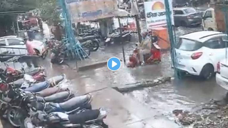 पाणी तुंबल्याने खड्डे दिसत नसल्याने लोक त्यात पडतात. असाच एक व्हिडीओ लोकांना आश्चर्याचा धक्का देत आहे. हा व्हिडीओ पाहून हसू…
