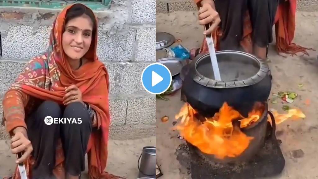 आता व्हायरल होत असलेल्या नव्या व्हिडीओमध्ये, मुलगी तपकिरी कुर्ता, काळ्या रंगाचा सलवार आणि दुपट्टा परिधान केलेली दिसत आहे. भाजी शिजवताना ती तिच्या चेहऱ्यावर सुंदर स्माईल देताना दिसून येत आहे. घराच्या एका कोपऱ्यात बसून शेगडीवर एका मोठ्या वाडग्यात सतत भाजी करत आहे.