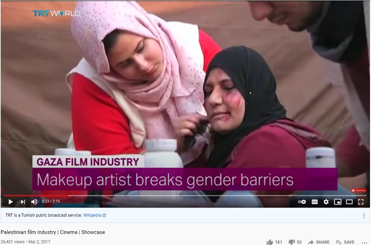 हे फोटो YouTube व्हिडिओच्या स्क्रीनशॉटसारखे दिसत होते. टायटलमध्ये इंग्रजीत लिहले होते: Palestinian film industry | Cinema | Showcase आणि व्हिडिओवरील तारीख, २ मार्च २०१७ होती.