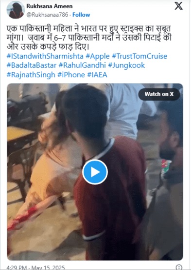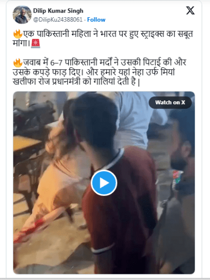 Woman Beaten Fact Check Video : सोशल मीडिया प्लॅटफॉर्मवर एक व्हिडीओ मोठ्या प्रमाणात शेअर केला जात आहे, ज्यामध्ये काही पुरुष एका महिलेला मारहाण करताना दिसत आहेत. व्हिडीओसह असा दावा केला जात आहे की, हा व्हिडीओ पाकिस्तानचा आहे, ज्यात एका महिलेने पाकिस्तानने भारतावर केलेल्या हल्ल्याचे पुरावे मागितल्याने पुरुषांच्या एका गटाने तिला मारहाण केली. पण, खरंच अशाप्रकारची कोणती घटना घडली का? तसेच या व्हि़डीओमागचं सत्य काय याविषयी जाणून घेऊ…
