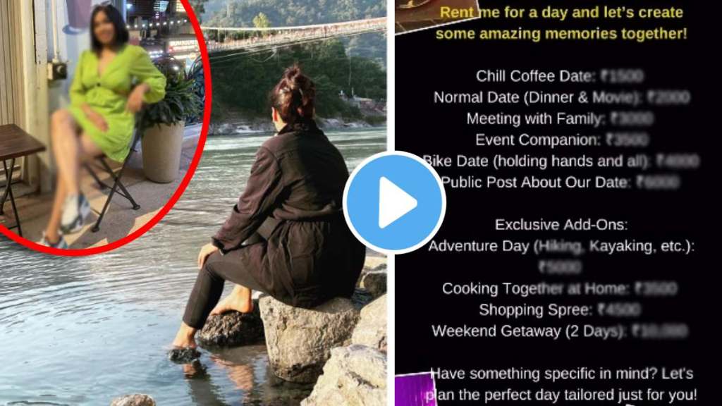 दिव्या गिरी (@divya_giri__) नावाच्या तरुणीने इन्स्टाग्रामवर याबाबत एक रील पोस्ट केली आहे, ज्यात तिने १५०० रुपयांपासून १०,००० रुपयांपर्यंतच्या स्कीम ऑफर केल्या आहेत. दिव्याने यावर कॅप्शनमध्ये लिहिले की, “तुम्ही सिंगल आहात? पण एखाद्या मुलीबरोबर डेटवर जाण्याची इच्छा आहे? तर मला डेटवर घेऊन चला, पण त्यासाठी तुम्हाला फक्त भाडे द्यावे लागेल.”