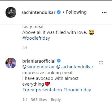 या फोटोवर एका महान फलंदाजांने केलेली कमेंट साऱ्यांचं लक्ष वेधून घेणारी ठरली. विंडिजचा महान फलंदाज ब्रायन लारा याने सारा आणि सचिन या दोघांनाही टॅग करत या पदार्थाचं कौतुक केलं.