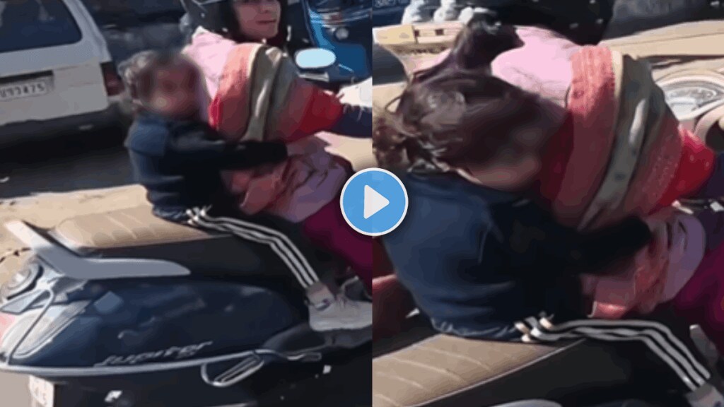सोशल मीडियावर व्हायरल झालेला व्हिडीओ पाहून तुम्हालाही धक्काच बसेल. या व्हिडीओमध्ये असं दिसतंय. की एक आई आपल्या लहान लेकीला घेऊन स्कूटर चालवत आहे. चिमुकली आईच्या मागे बसून तिला घट्ट पकडून बसली आहे. तसंच असंही दिसतंय की त्या मुलीला झोपदेखील लागली आहे. आईच्या या निष्काळजीपणावर एका माणसाने आवाज उठवला आहे. एक बाईकस्वार तिच्याजवळ मागून येतो, हॉर्न देत तिचं लक्ष वेधून घेण्याचा प्रयत्न करतो आणि तिला म्हणतो, बाजूला घ्या गाडी.